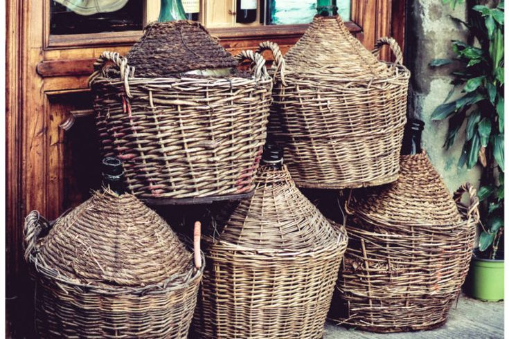 Another commonly used container for collecting olive oil was the dark glass demijohn with its two-handled basket, especially convenient for transport. These too were stored as needed, always to keep the olive oil in a dark place and protected from temperature changes.